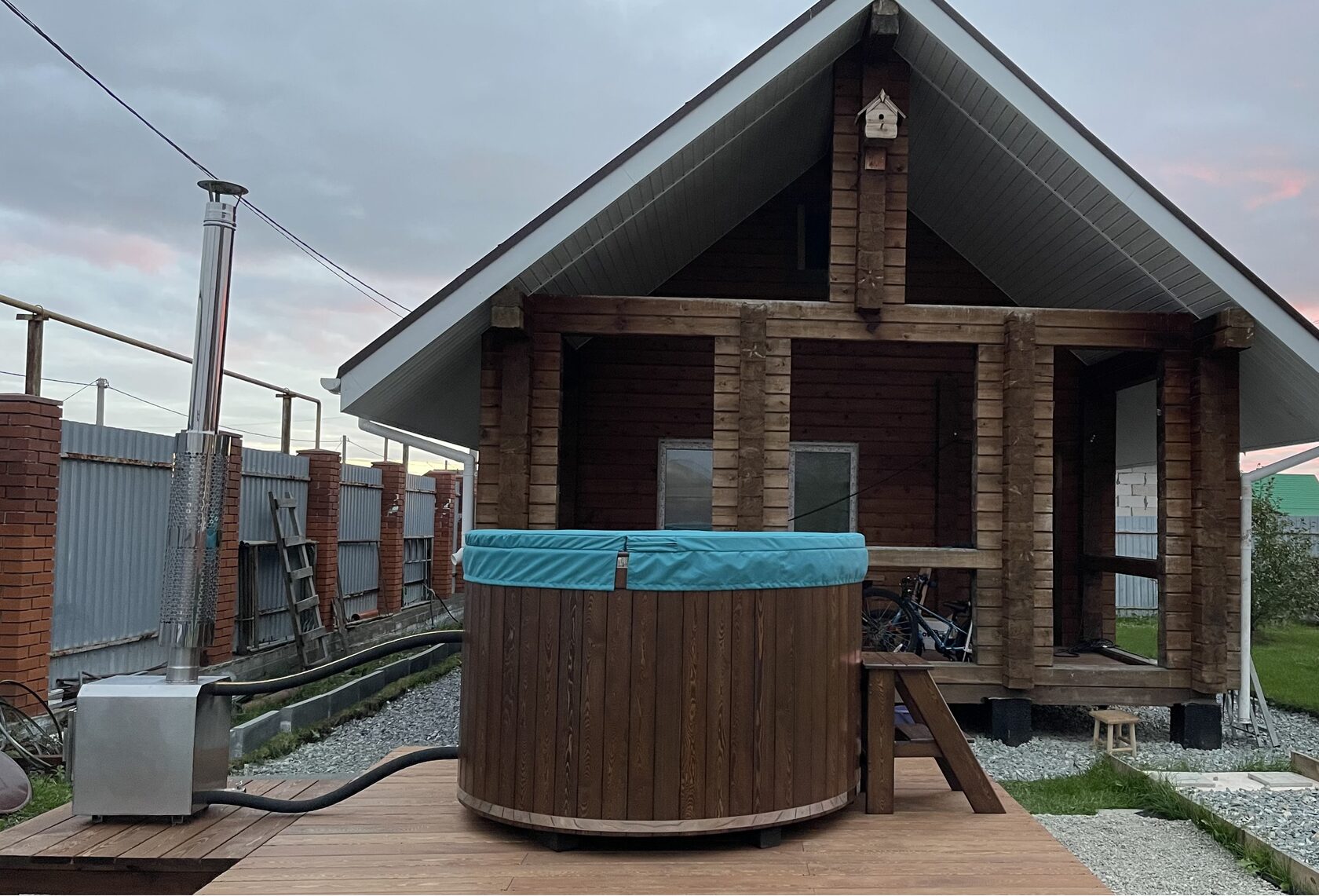 В КОМПЛЕКТАЦИИ: обручи из нерж. стали 2 шт., покраска деревянных элементов, форсунки для циркуляции воды из нерж. стали 2 шт,